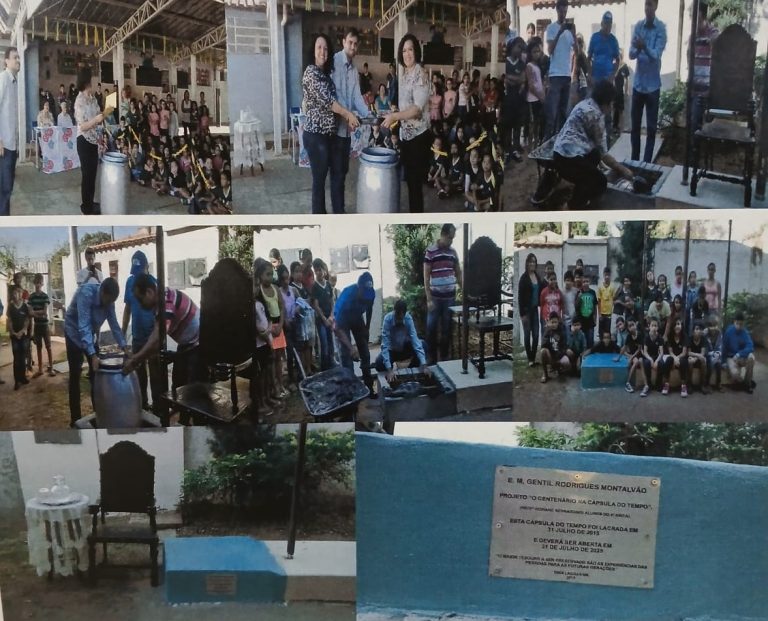 No próximo sábado, 30 de agosto, às 8h, a Escola Municipal “Gentil Rodrigues Montalvão” realizará um momento histórico e emocionante: a abertura da Cápsula do Tempo, lacrada há 10 anos (FOTO AO LADO É DO DIA DA AÇÃO) como parte do projeto “O Centenário na Cápsula do Tempo”, desenvolvido em 2015 pela professora Rosiane Bernardino.