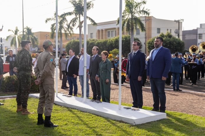 A solenidade teve início com o hasteamento das bandeiras e execução dos hinos nacional, estadual e municipal. Depois, as autoridades assistiram ao desfile militar para então usarem a palavra e se dirigirem a população.
