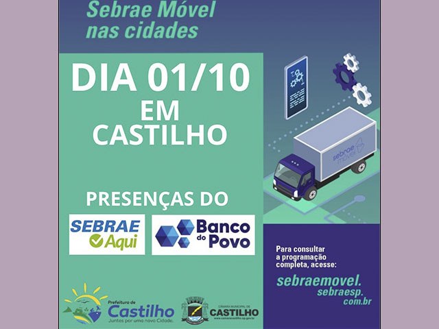 O Sebrae Móvel estará em Castilho na quarta-feira da semana que vem, 1º de outubro, oferecendo atendimento gratuito a empreendedores locais, incluindo MEIs (Microempreendedores Individuais) e aqueles que desejam se formalizar.