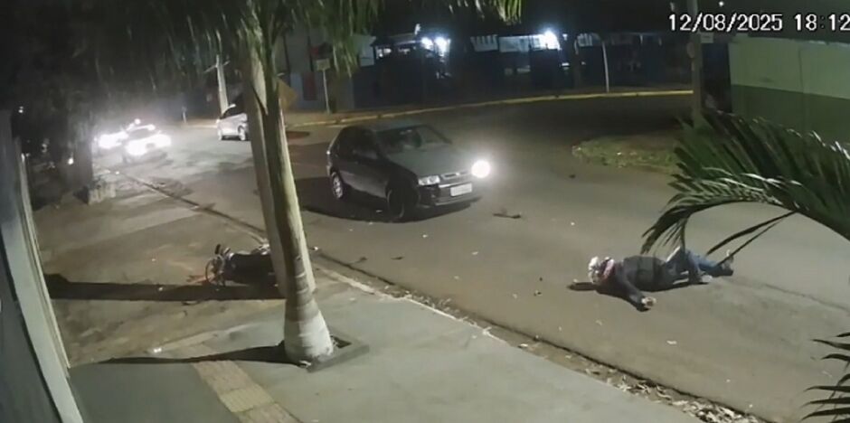 Um motociclista ficou ferido no início da noite desta terça-feira (12) após se envolver em um acidente na Vila Progresso, em Campo Grande. Imagens de câmeras de monitoramento registraram o momento da colisão.